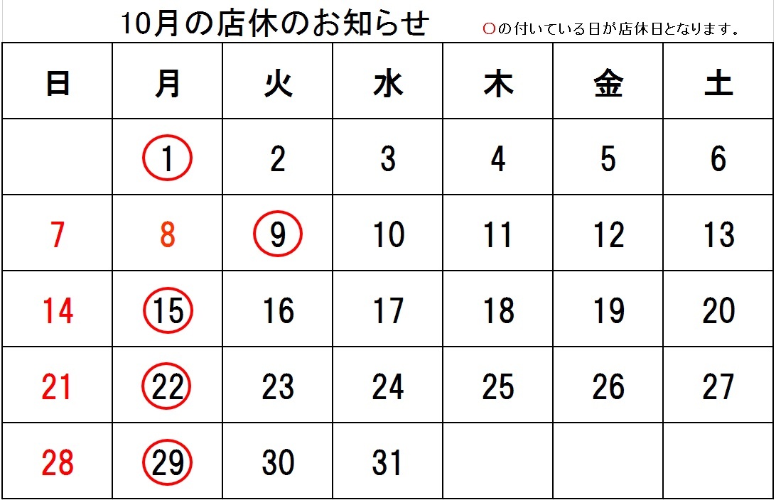 10月定休日