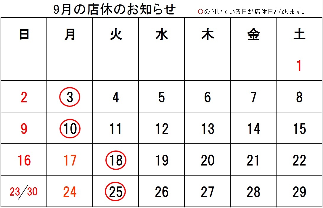 9月定休日